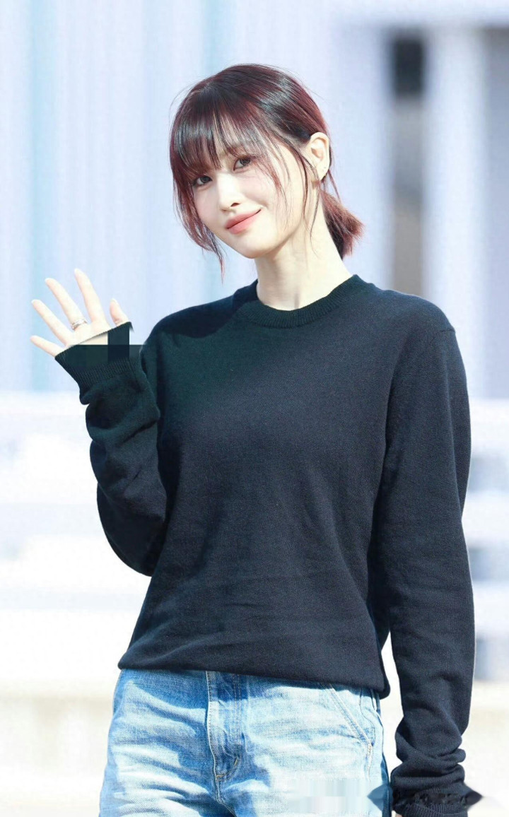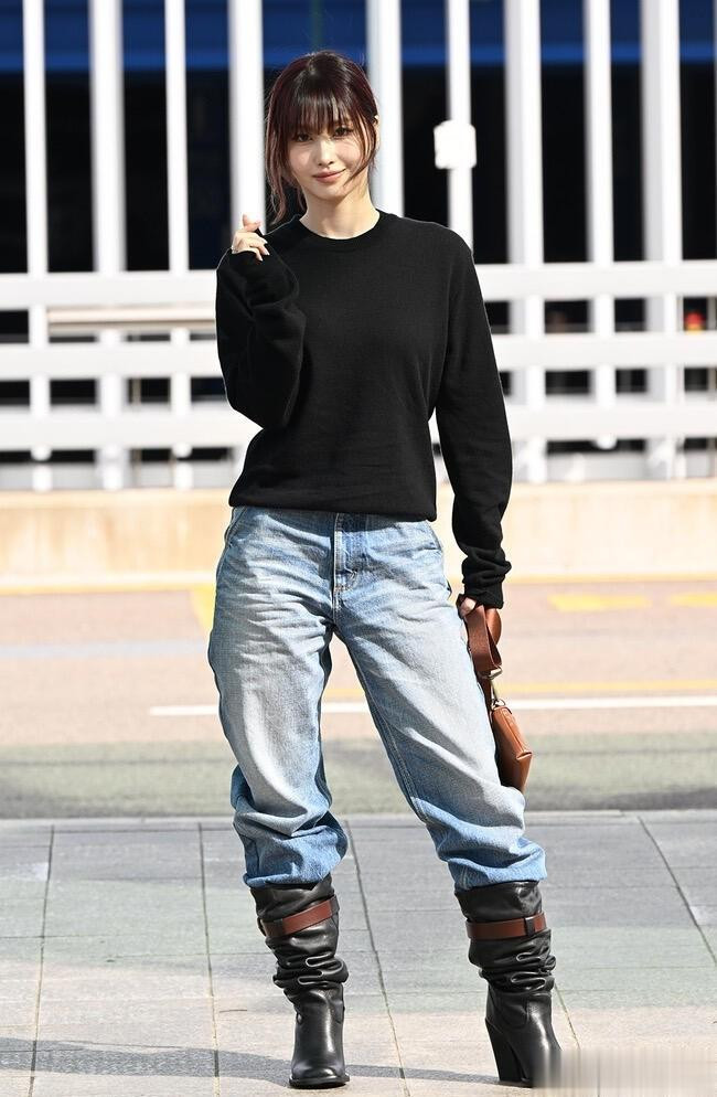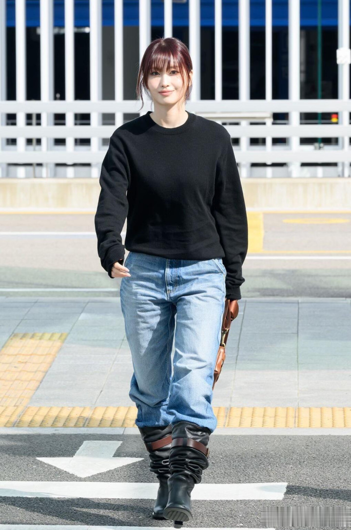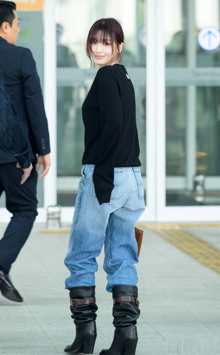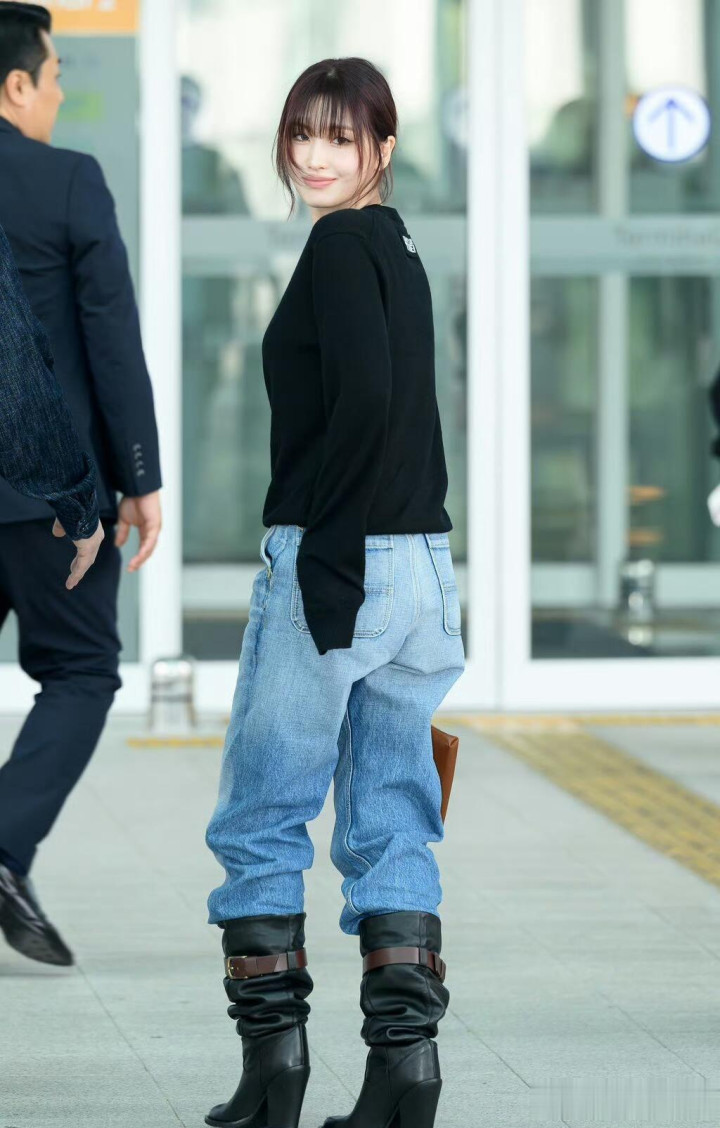 平井桃前往米兰时装周, 穿黑色针织衣配牛仔裤, 皮肤白皙透亮好美